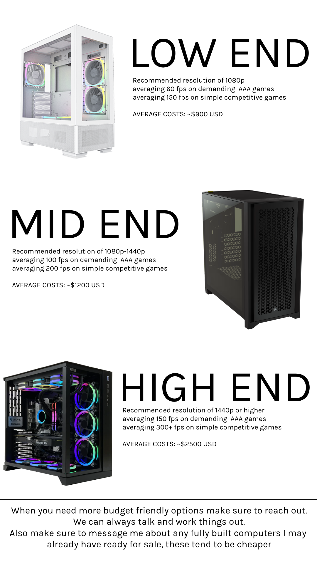 If you’ve ended up here, you want to know more about getting a gaming computer built. If you’re searching for more performance, more frames, faster response times. Let me help you ensure your computer will never limit your abilities in game. Send your information to me below and I’ll get back to you promptly!